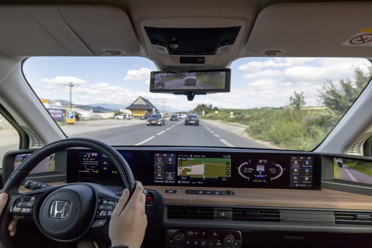 Displeje umožňujú veľmi variabilné zobrazenie množstva informácií či multimédií, váš spolujazdec si dokonca pomocou HDMI môže pripojiť hernú konzolu, aby sa nenudil na dlhých trasách. V strede pod palubnou doskou nájde aj 230 V zásuvku na jej napájanie. Samozrejmosť je bohatá konektivita vrátane systémov Android Auto aj Apple CarPlay. Displejová kabína vrátane elektronických spätných zrkadiel je súčasť už základnej výbavy, rovnako aj systém Honda Sensing, v ktorom nájdete pokročilé asistenčné systémy ako adaptívny tempomat, aktívne udržiavanie v jazdnom pruhu, rozpoznávanie značiek, automatické prepínanie diaľkových svetiel, systém zmiernenia následkov nehody s detekciou cyklistov a chodcov, upozornenie na pohyb vozidla vpredu a predkolízny systém pri malých rýchlostiach.