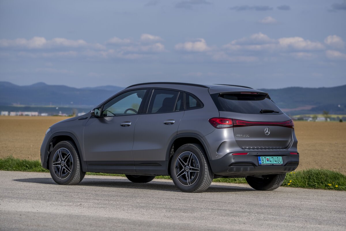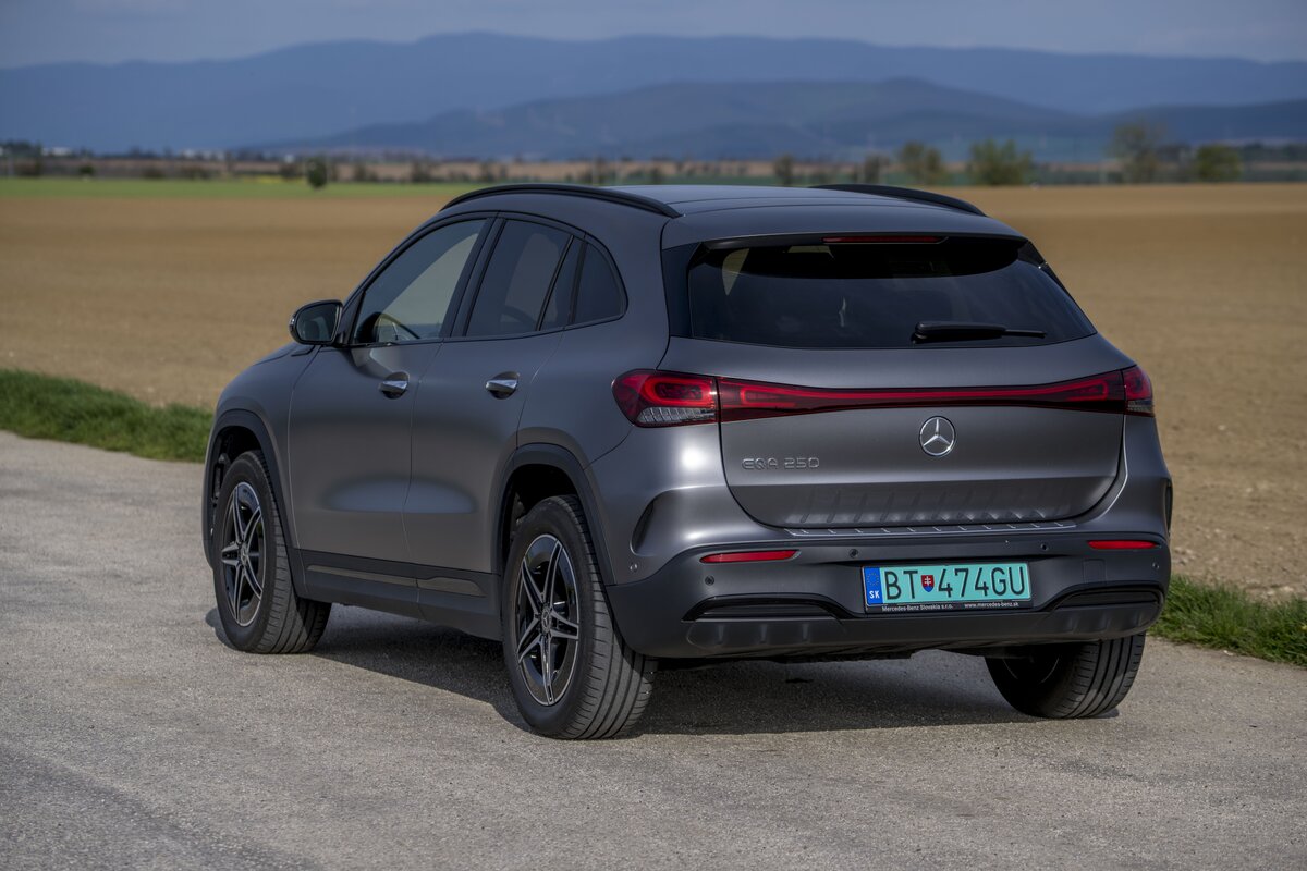 Dizajn modelu EQA 250 vychádza z malého crossovera radu GLA ktorého pomerne robustná konštrukcia bola upravená tak, aby vyhovovala špecifickým požiadavkám pre elektromobil. Jediným výrazným rozdielom navonok, oproti modelu GLA, je predná maska ktorej stredná časť je plná, bez mriežky a predné svetlá sú prepojené LED pásom rovnako ako zadné. Usporiadanie interiéru aj palubnej dosky je v podstate zhodné s GLA, iba funkcie MBUX sú upravené pre elektromobil. V testovanej výbave bola dvojica 10,5“ displejov s vysokým rozlíšením ktoré sú ukryté pod spoločným, jemne prehnutým sklom. EQA 250 je vlastne základným modelom radu EQA, s predným náhonom. V tejto sérii nájdete tiež modely EQA 300 4Matic s výkonom 168 kW a EQA 350 4Matic s výkonom 215 kW, obidva s pohonom všetkých kolies. Časom má pribudnúť ešte verzia s predĺženým dojazdom až 500 km. To však ale neznamená že aktuálny model nemá čo ponúknuť. Vo výbave nájdete batériu s využiteľnou kapacitou 66,5 kWh, a elektromotor poháňajúci predné kolesá s výkonom 140 kW. Táto kombinácia poskytne dojazd na úrovni 399 – 426 km podľa WLTP. Mimochodom, počas testu sa nám podarilo dosiahnuť dojazd po okreskách a v meste až 435 km. Vstavaná AC nabíjačka s výkonom 11 kW je trojfázová a batériu s ňou nabijete za 5 hodín 45 minút. DC nabíjanie pracuje s výkonom 110 kW . Batéria je stále udržiavaná v pracovnej teplote, takže nehrozí jej podchladenie ani prehriatie.
